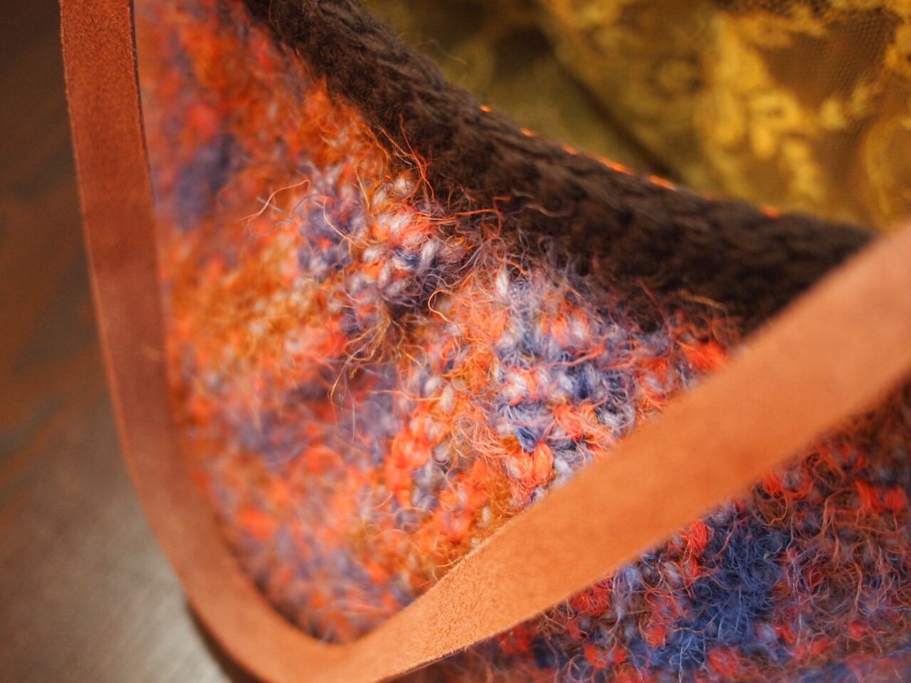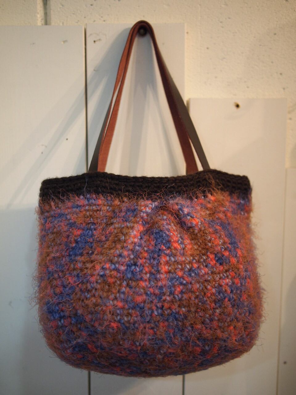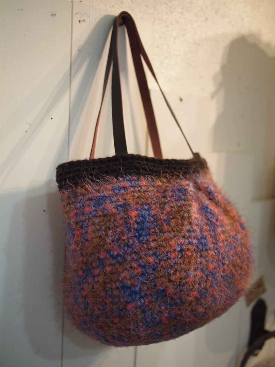 毛足の長い糸と単色糸の2種類を混ぜて編みました